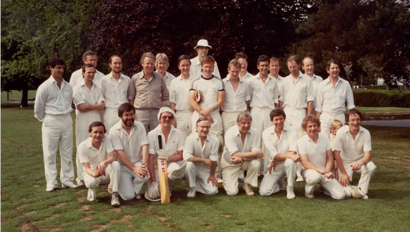 Seeboard ground, Burford Bridge, Sunday 26th June 1983. Both teams gather